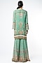 Featuring a pista green kurta in georgette base with floral print and embroidery. It is paired with matching flared sharara pants and a dupatta.