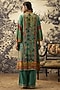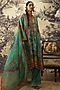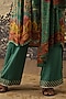 Featuring a rama green A-line suit with bell sleeves beautifully handcrafted and embroidered on front yoke. It is styled with a co-ordinated printed dupatta and straight pants.