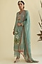 Featuring a sky blue kurta in viscose crepe base with floral print. It is paired with matching straight pants and a georgette dupatta.