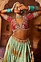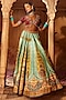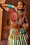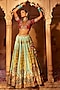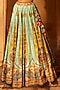 Featuring a sky blue and yellow lehenga in raw silk base with beads and sequins hand embroidery. It is paired with a maroon embroidered blouse and a sea green tissue georgette dupatta. Enhance your wedding or bridesmaid look by pairing this designer lehenga set with polki jewellery. It is a perfect way to elevate your ensemble and stand out on your special occasion.