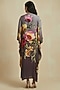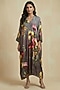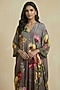 Stone Grey Silk Cotton Floral Motif Printed Kaftan Dress