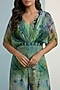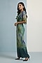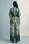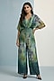 Kalista showcases a teal green jumpsuit in viscose crepe base with draped sleeves, cinched waist and floral print. Style it with mules, minimal stud earrings and a tote bag for an effortless look. Ideal for a travel, brunch or summer outings.