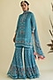 Featuring a turquoise kurta in viscose georgette base with floral print and hand embroidery. It is paired with matching gharara pants and a dupatta.