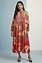 Kalista showcases a walnut flow pleated midi dress in pure cotton base with floral print and hand embroidery. Style it with mules, minimal stud earrings and a tote bag for an effortless look. Ideal for a travel, brunch or summer outings.