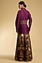 Featuring a wine shirt in silk viscose base with embroidery. It is paired with a digital printed slit skirt and a belt. Accentuate it with dangler earrings and embellished heels for a festive occasion or wedding ceremony.