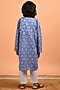Cobalt Blue Floral Printed Kurta Set For Boys