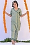 Featuring a green angrakha kurta in cotton base with tie-up, floral print and gota work. It is paired with matching pants.