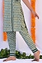 Green Cotton Printed Kurta Set For Girls