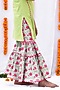 Featuring a green short kurta in cotton base with gota lace. It is paired with contrasting mint sharara pants having a floral print and a dupatta.