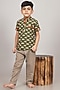 Featuring an olive green shirt in cotton base with plackets, detailing, patched pockets, and digitally printed cars. This contains only one piece.