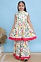 Featuring a white kurta for girls in cotton base with floral print. It is paired with printed sharara pants and a dupatta. Style it with sandals and hair accessories for festive occasions or sangeet ceremony.
