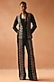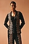 Featuring a black blazer in satin base with embroidery. It is paired with pants. Accentuate it with stud earrings and heels for casual outings or sundowner.