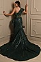Featuring an emerald green fish-cut gown in net base with sequins hand embroidery.
