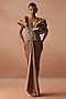 Featuring a gold top in cotton base with embroidery. It is paired with a satin pleated draped skirt. Accentuate it with statement earrings and heels for a cocktail party, engagement or sangeet ceremony.