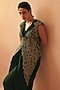 Featuring a green jacket in cotton base with embroidery. It is paired with a blouse and satin pleated skirt. Accentuate it with statement jewellery and heels for wedding ceremonies.