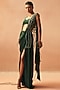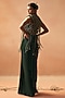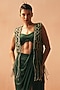 Featuring a green skirt saree in satin base with embroidery. It is paired with a blouse and a cotton belt. Accentuate it with heels and statement earrings for a cocktail night, wedding reception, or festive soiree.