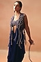 Featuring a purple jacket in cotton base with an attached cowl and embroidery. It is paired with a satin embroidered top and a draped skirt. Accentuate it with bold earrings and strappy heels for cocktail nights, evening weddings, or festive celebrations.