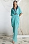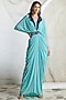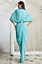 Featuring a pool blue draped dress in lycra base. It is paired with a contrasting belt.