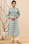 Featuring a blue and white straight kurta in cotton base with hand block print. It is paired with a contrasting white straight pants.