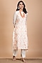 Featuring a cream kurta in chanderi base with floral and beaded embroidery. It is paired with matching cotton pants and handmade beaded necklace.