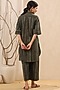 Featuring a green high-low shirt kurta in cotton base with stripes print and thread work details, including button down placket and pleated back. It is paired with matching pants.