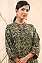 Featuring a moss green high-low shirt kurta in cotton base with floral print and thread work details, including mandarin collar and button down placket and pleated back. It is paired with matching pants.