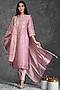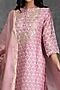 Featuring a pink kurta in silk chanderi base with floral hand block print and gota patti hand embroidery. It is paired with matching cotton pants and a dupatta.