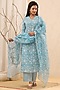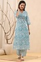 Featuring a sky blue kurta in cotton base with floral print and thread work. It is paired with a matching striped pants and a kota doria dupatta.