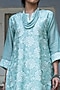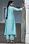 Featuring a sky blue kurta in chanderi base with lace and floral embroidery. It is paired with matching cotton pants.
