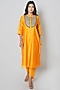 Featuring a yellow kurta in chanderi base with marori and sequins work. It is paired with matching cotton tulip pants.
