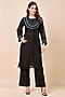 Featuring a black kurta in silk organza base with hand embroidery. It is paired with opada silk pants and a silk dupatta. Elevate the look with statement earrings and light makeup, perfect for a festive occasion or rakhi gathering.