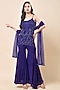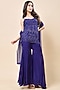 Featuring a blue kurta in net base with hand embroidery. It is paired crepe gharara pants and a net dupatta. Accentuate it with statement earrings and heels, perfect for intimate get-togethers, rakhi celebrations, or low-key festive evenings.