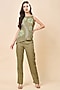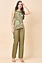 Featuring a green top in linen base with hand embroidery. It is paired pants. Accentuate it with statement earrings and heels, perfect for a brunch or a garden party.