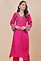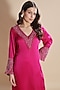 Featuring a pink kurta in silk organza base with hand embroidery. It is paired with opada silk pants. Elevate the look with statement earrings and light makeup, perfect for a festive occasion or rakhi gathering.