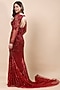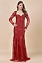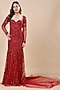 Featuring a red gown in net base with hand embroidery. Accentuate it with statement earrings and heels for a destination wedding, cocktail or engagement ceremony.
