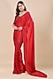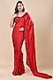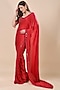 Featuring a red saree in satin georgette base with hand embroidery. It is paired with a net blouse. Accentuate it with statement earrings and heels for festive occasions, sangeet or cocktail ceremony.