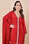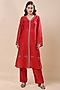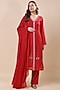 Featuring a red kurta in silk organza base with hand embroidery. It is paired upada silk pants and a georgette dupatta. Accentuate it with statement earrings and heels, perfect for intimate get-togethers, rakhi celebrations, or low-key festive evenings.
