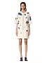 Featuring a beige mini dress in japanese crepe base with embellishments. Accentuate it with statement earrings and heels for festive occasions or wedding ceremonies.