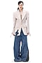 Featuring a beige single-breasted blazer in polyester base with asymmetrical cut-out detailing. Accentuate it with pants, hoop earrings and high-boots for formal events.