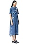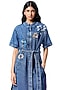 Featuring a blue dress in cotton base with hand embellishment. It is paired with a belt. Accentuate it with statement jewellery and heels for evening soirees.