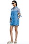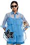 Featuring a blue shirt in organza base with contrast stitch details and embellishments. Style it with sunglasses and heels for vacation wear.