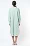 Featuring a cyan green shirt dress in cotton base with embellishments and bishop sleeves.
