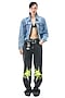 Featuring black denim pants in cotton base with front button closure and hand embellishments. Accentuate it with a blazer, statement jewellery, and sneakers for evenings or casual outings.