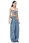 Featuring a denim blue top in cotton base with engineered print and patchwork. Accentuate it with pants, statement earrings and sneakers for evenings or casual outings.