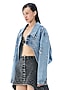 Featuring a denim blue oversized jacket in cotton base with embellishments. Accentuate it with a pair of jeans, statement jewellery and sneakers for evenings or casual outings.