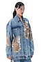 Denim Blue Cotton Printed & Embellished Jacket