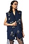 Featuring a navy blue vest in polyester base with a notched collar, pockets and embellishment. Accentuate it with pants, statement earrings and heels for an evening look.