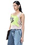 Featuring a neon colored tank top in polyester base with sequins embellishment. Accentuate it with pants, statement earrings and sneakers for evenings or casual outings.