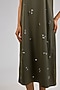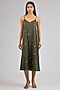 Featuring an olive green midi dress in satin base. Style it with silver hoop earrings, a chic tote bag, and comfortable flats, perfect for an effortless daytime look.