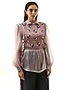 Featuring a pink overlay shirt in polyester base with hand embellishment, ruching detail and front button closure. It is paired with a bib. Accentuate it with pants, dangler earrings and heels for evening soirees.